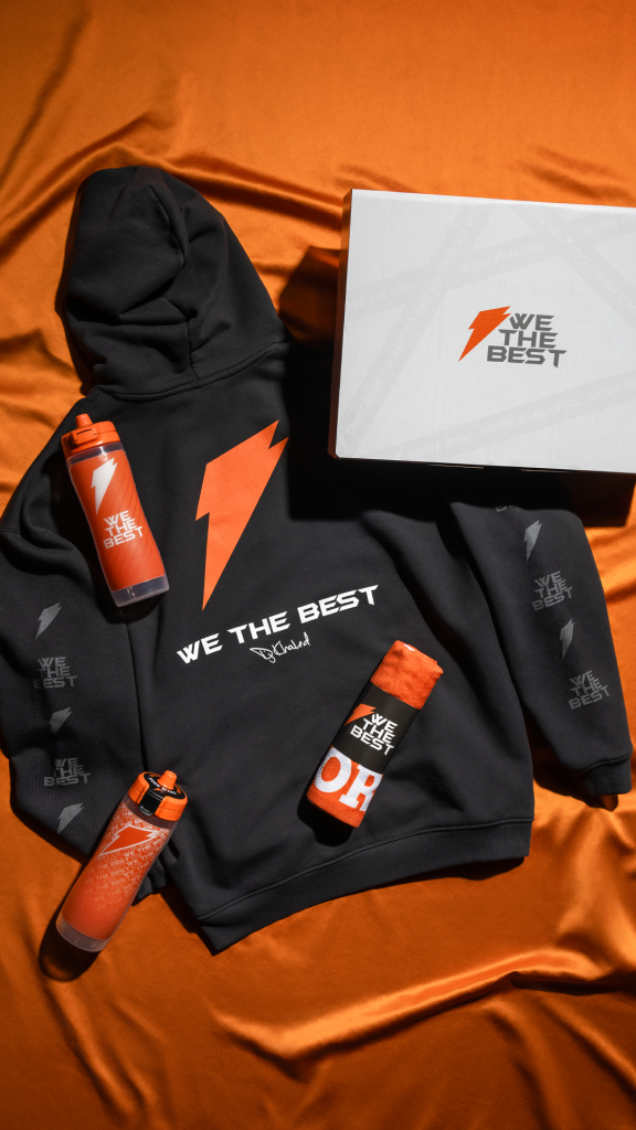 The “Gatorade x DJ Khaled” collection includes a DJ Khaled-personalized Gx Bottle and towel, which features the “We The Best” logo across both, a Jordan Brand hoodie that features the Gatorade and “We The Best” logos, and DJ Khaled’s signature across the back. The hoodie is made from heavyweight loopback French Terry.