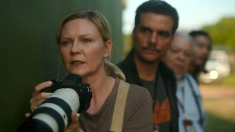 Civil War occurs in the future and sees a group of wartime journalists, played by Kirsten Dunst, Wagner Moura, and Cailee Spaeny, covering the divide across the United States as they attempt to travel to Washington, D.C, during the second Civil War.