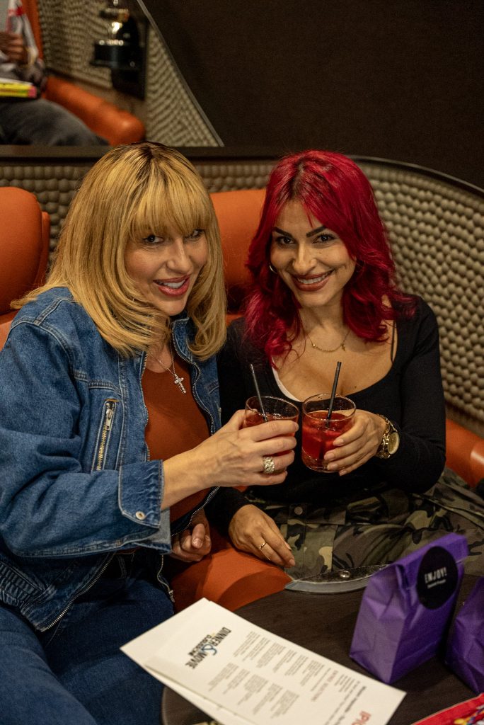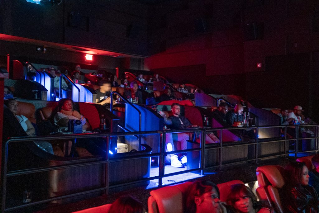 As guests were escorted into their private theater, they were greeted with personalized name cards and sweet treats awaiting them in their seats. Each attendee received a complimentary entrée of their choice, paired with a refreshing soft drink. The menu? A foodie’s dream. From vegan nachos and Buffalo Chicken Spring Rolls to Caesar salads and classic pepperoni pizza, the culinary selection was as unforgettable as the film.