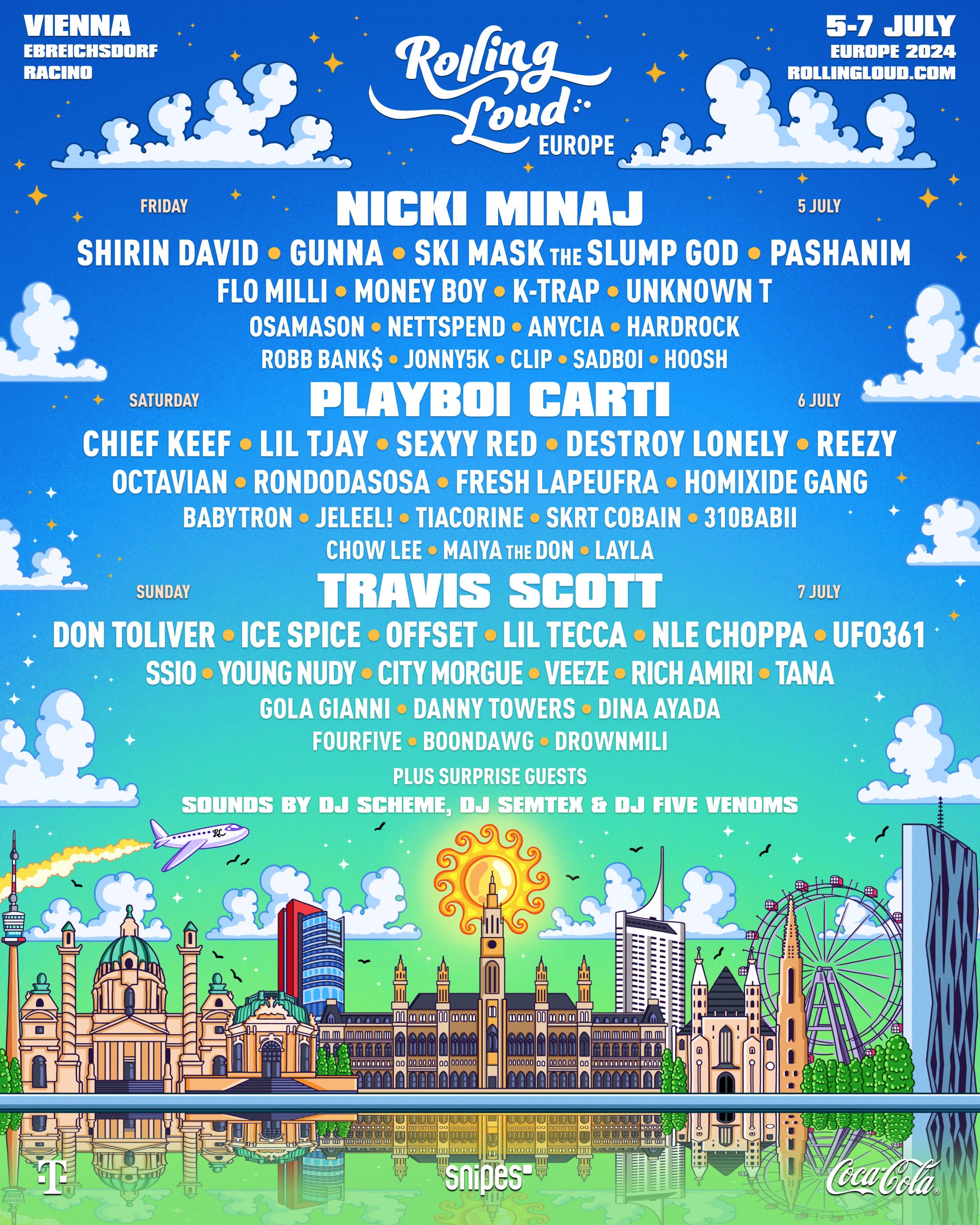 The event is set to take place near Vienna at the Rancino venue. In addition to the headline acts that have excited fans, the lineup includes artists such as Ice Spice, Offset, Don Toliver, Flo Milli, TiaCorine, Anycia, Ski Mask, The Slump God, Lil Tjay, Sexyy Red, Chief Keef, K-Trap, Unknown T, Destroy Lonely, Money Boy, Gola Gianni, Ufo 361, Shirin David, Fresh, Pashanim, Reezy, and Rondodasosa.
