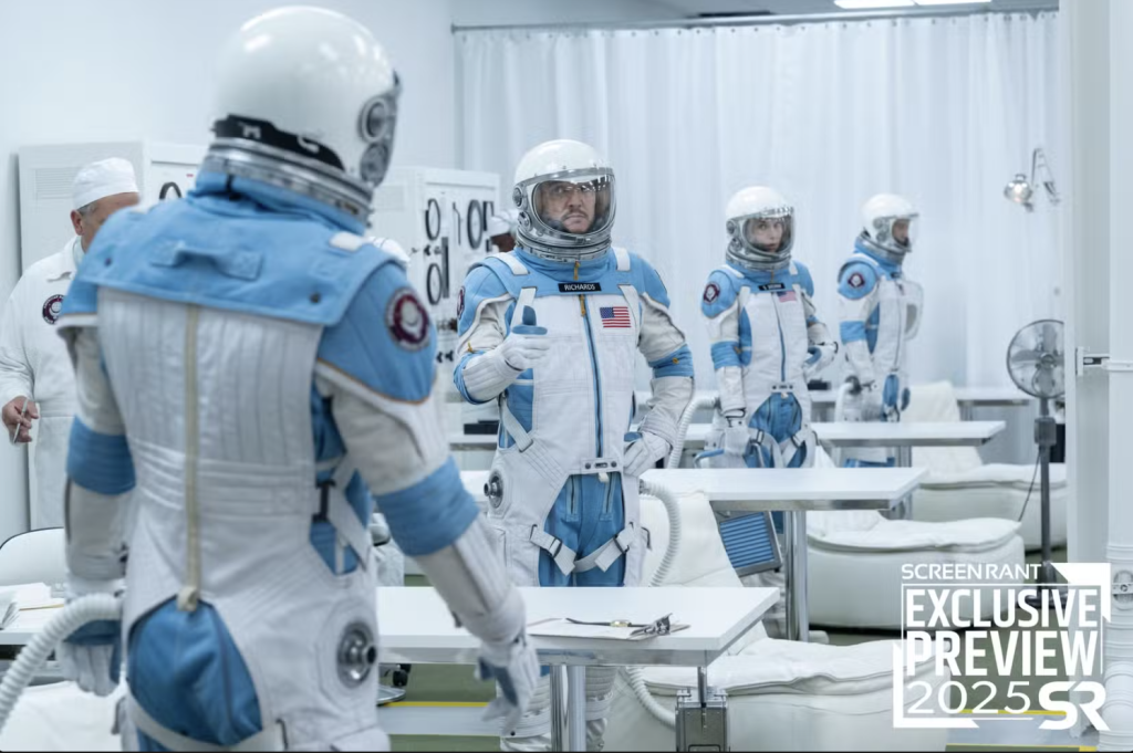 Setting the tone for the MCU’s next multiversal leap, the newly released image—courtesy of ScreenRant’s Summer Movie Preview—offers a stunning look at Pedro Pascal as Reed Richards, Vanessa Kirby as Sue Storm, Joseph Quinn as Johnny Storm, and Ebon Moss-Bachrach as Ben Grimm. The four are suited up and ready for space, but this isn’t the typical MCU tech—they’re dressed in retro-futuristic astronaut gear that channels a fresh twist on the 1960s aesthetic.