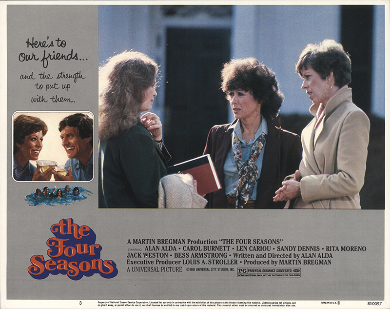 The Four Seasons is about three upper-middle-class married couples in New York City who take vacations with each other during each of the seasons. It stars Carol Burnett, Len Cariou, Sandy Dennis, Rita Moreno, Jack Weston, and Bess Armstrong.