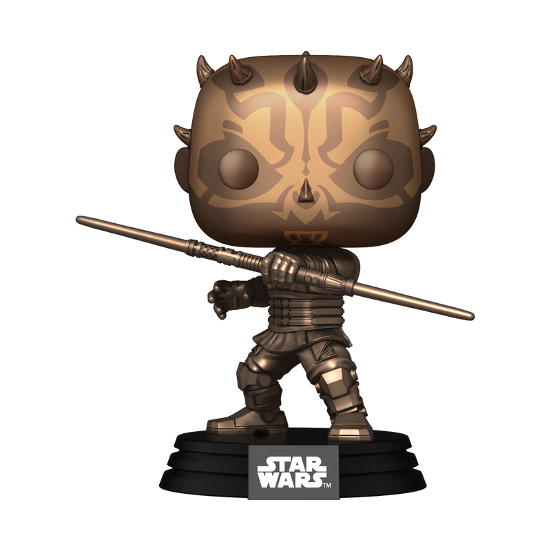 Palpatine’s first apprentice, Darth Maul, gets a unique treatment with a bronze-finished figure, exclusive to the Funko website. This standard-sized figure looks like a statue, capturing Maul’s menacing presence and artistry in one piece. The bronze finish adds a touch of sophistication, making it a special addition to any collection.